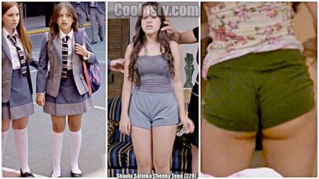 Shaula Satinka colegiala en microshort con nalgas temblorosas.