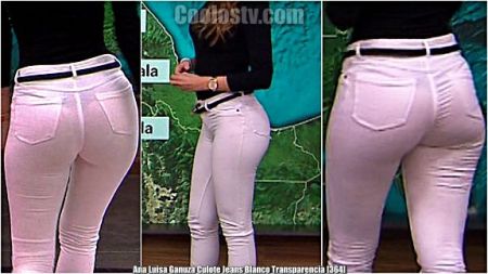 Ana Luisa Ganuza transparentando tanga negra en jeans blancos culote abultado en Matutino Express.