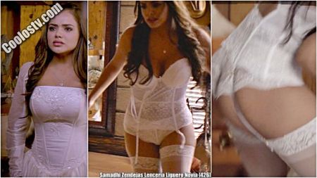 Samadhi Zendejas desnudandose enseña su culote en tanga lenceria y liguero sexy novia.