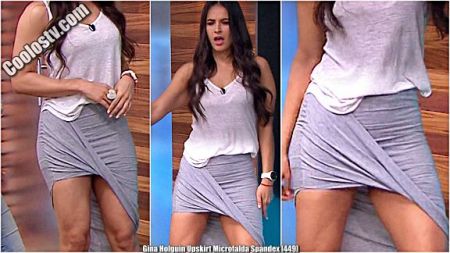 Gina Holguin descuido en microfalda de spandex abre las piernas mientras baila