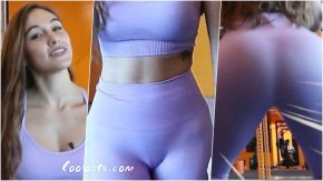Alessia Pizarro Camel Toe Marcado Ejercitando Culote en Leggings Morados VPL